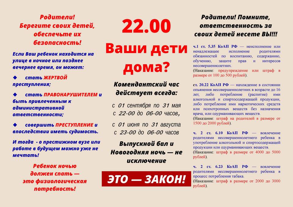 Административные | Наложение штрафов на родителей |